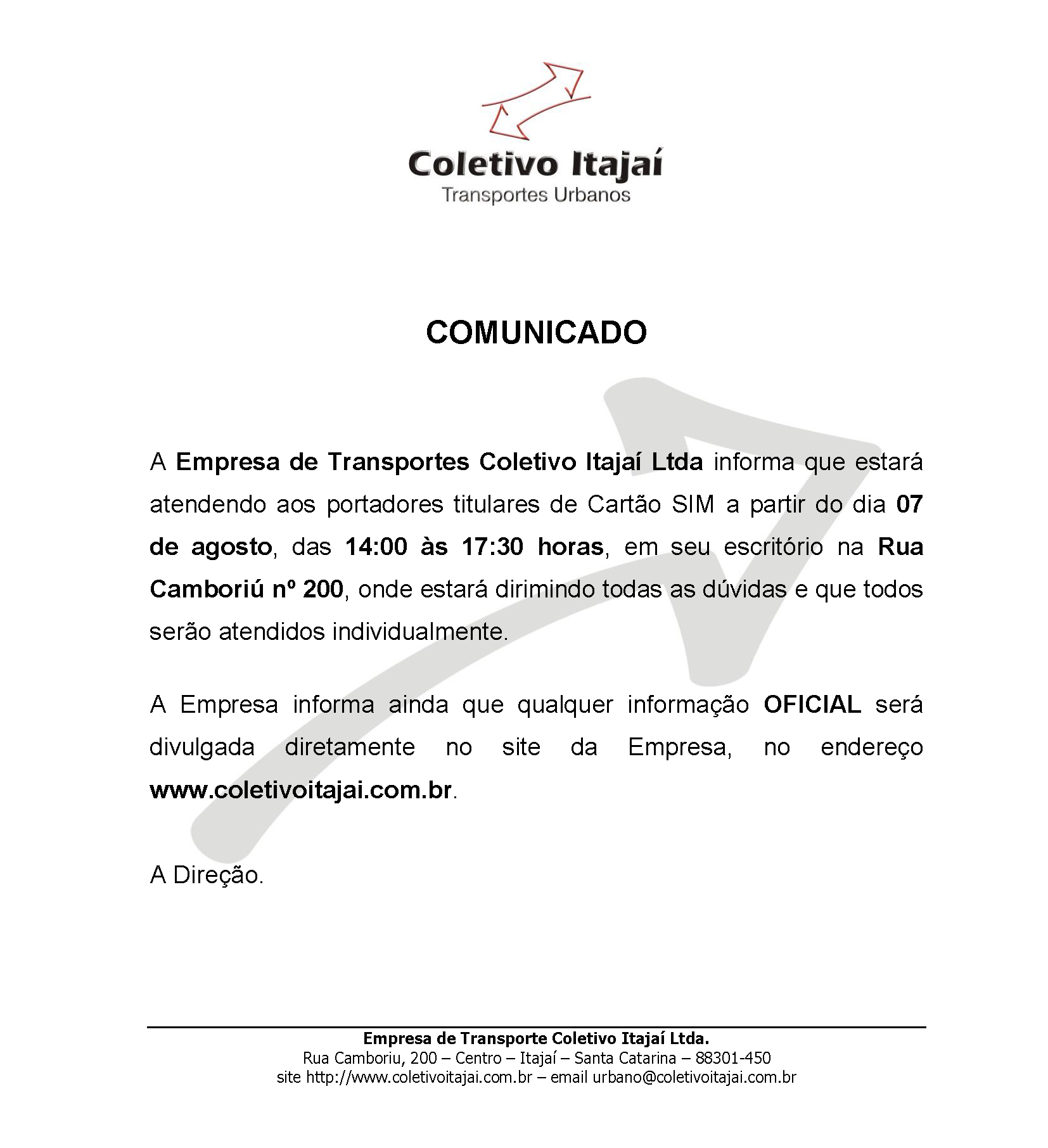 Concessionária dos Serviços Públicos de Transporte Coletivo de Passageiros do Município de Itajaí/SC.